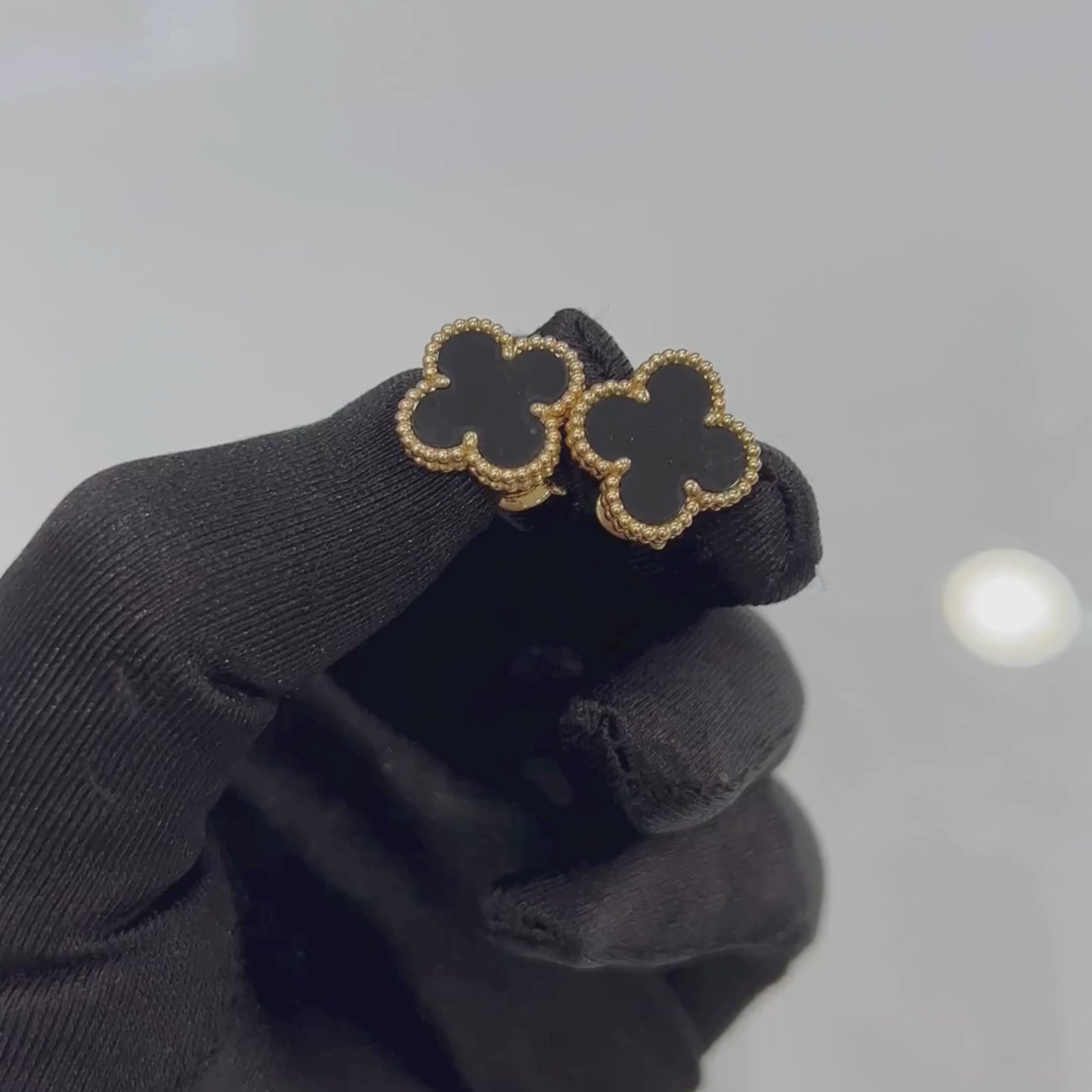 Van Cleef & Arpels Magic Alhambra Earrings 3 Motifs Mother-Of-Pearl and Onyx 18K Yellow Gold