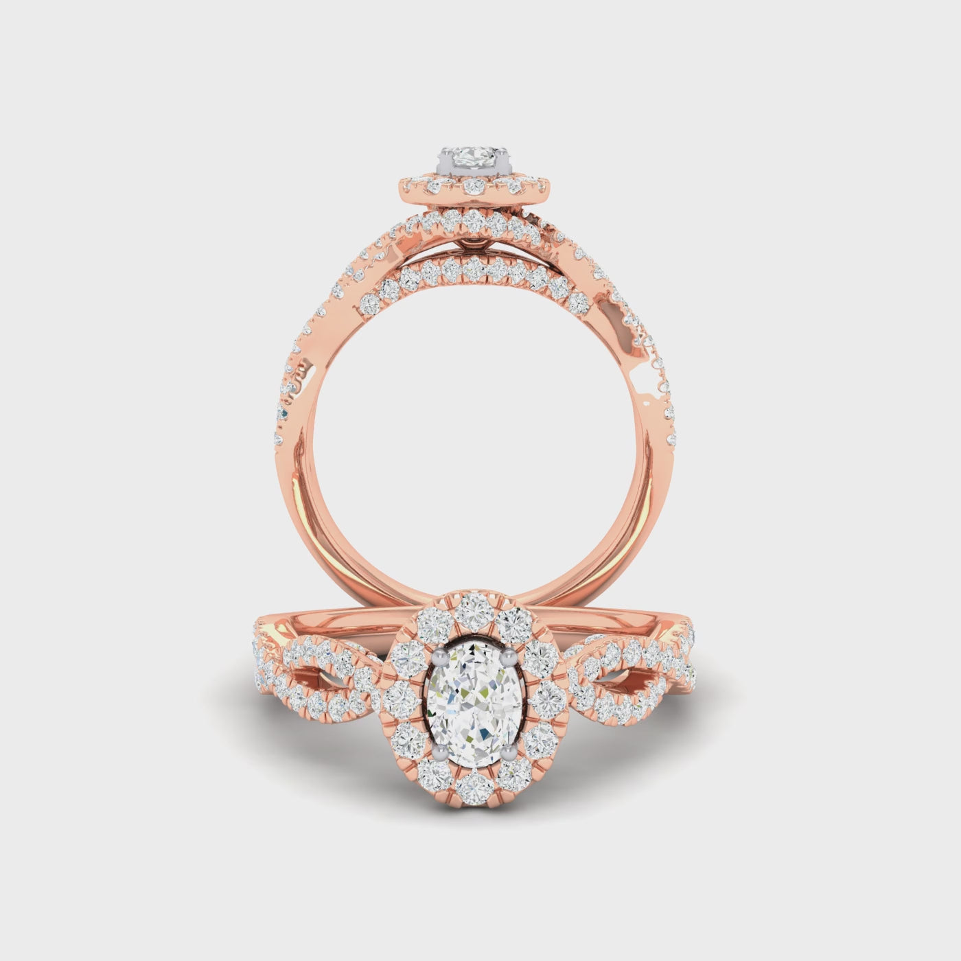 Make an Offer for: 1.00ct Diamond Oval Halo Twisted All Natural Engagement Ring 14K White Gold