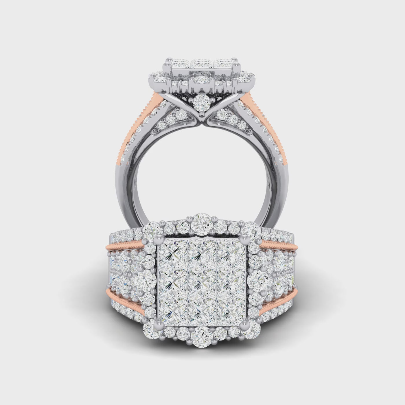 Make an Offer For : 2.75ct Diamond Square Cluster All Natural Engagement Ring 18K White Gold