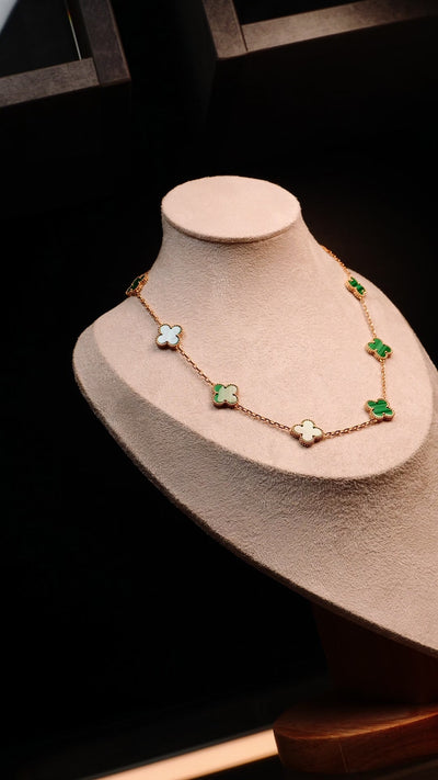 Make an Offer For : Van Cleef & Arpels Vintage Alhambra Necklace 10 Motifs Malachite 18K Yellow Gold
